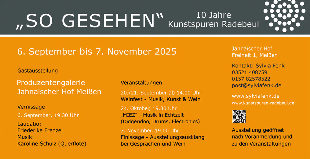 "SO GESEHEN" ist unsere dritte Ausstellung, die wir am 6. September 2025 in der Produzentengalerie Jahnaischer Hof auf dem Burgberg in Meißen eröffnen.
