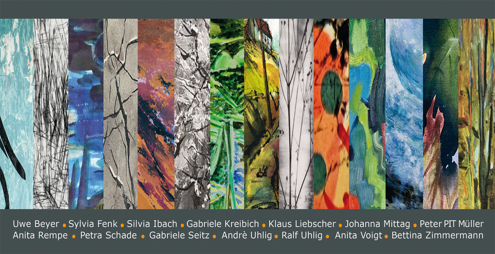 Inhaltlich spannen wir so den Bogen von dem, was uns neben der Kunst ausmacht (das Miteinander) zum Innehalten und Bewußtwerden der langen Zeit - 10 Jahre - die wir nun zusammen agieren, bis hin zu Vielfalt in Technik und Thema, da es diesbezüglich keine Begrenzungen oder Vorgaben innerhalb der Gruppe gibt.